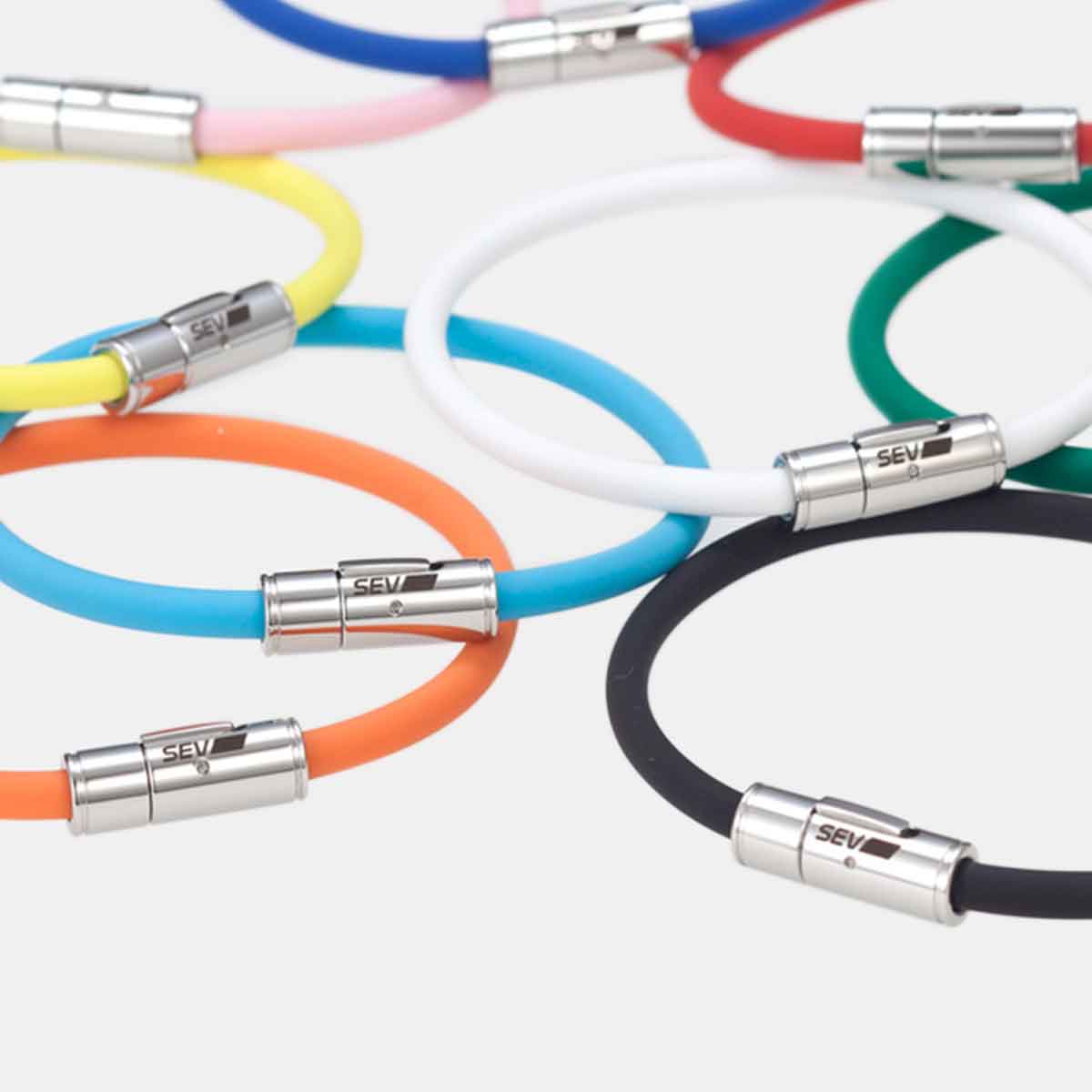 ループ全体とアタッチメント部分に”nanoSEV技術”を採用した高い体感度とワンポイントアクセサリーという機能性とデザイン性の両方を兼ね備えたブレスレットです。アタッチメント部分は削り出しにより1本1本丁寧に手作りしています。また、脱着のしやすさにもこだわりました。