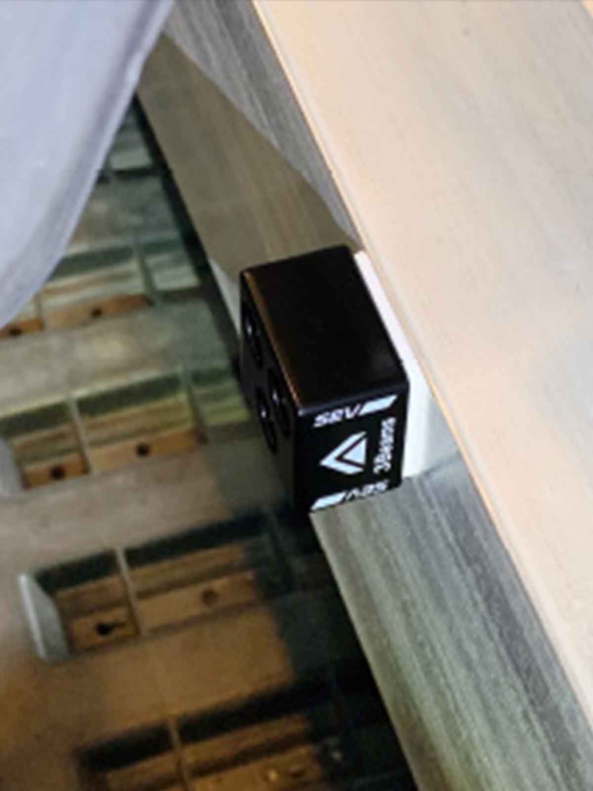 製品本体の下の面に接着テープを使用した設置例。