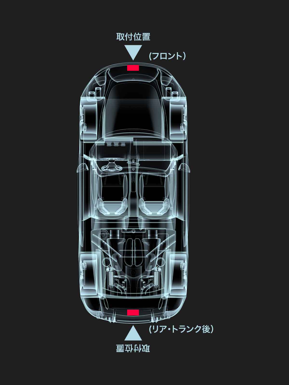 ※本体の矢印をエンジンまたは車両後方に向けてください。