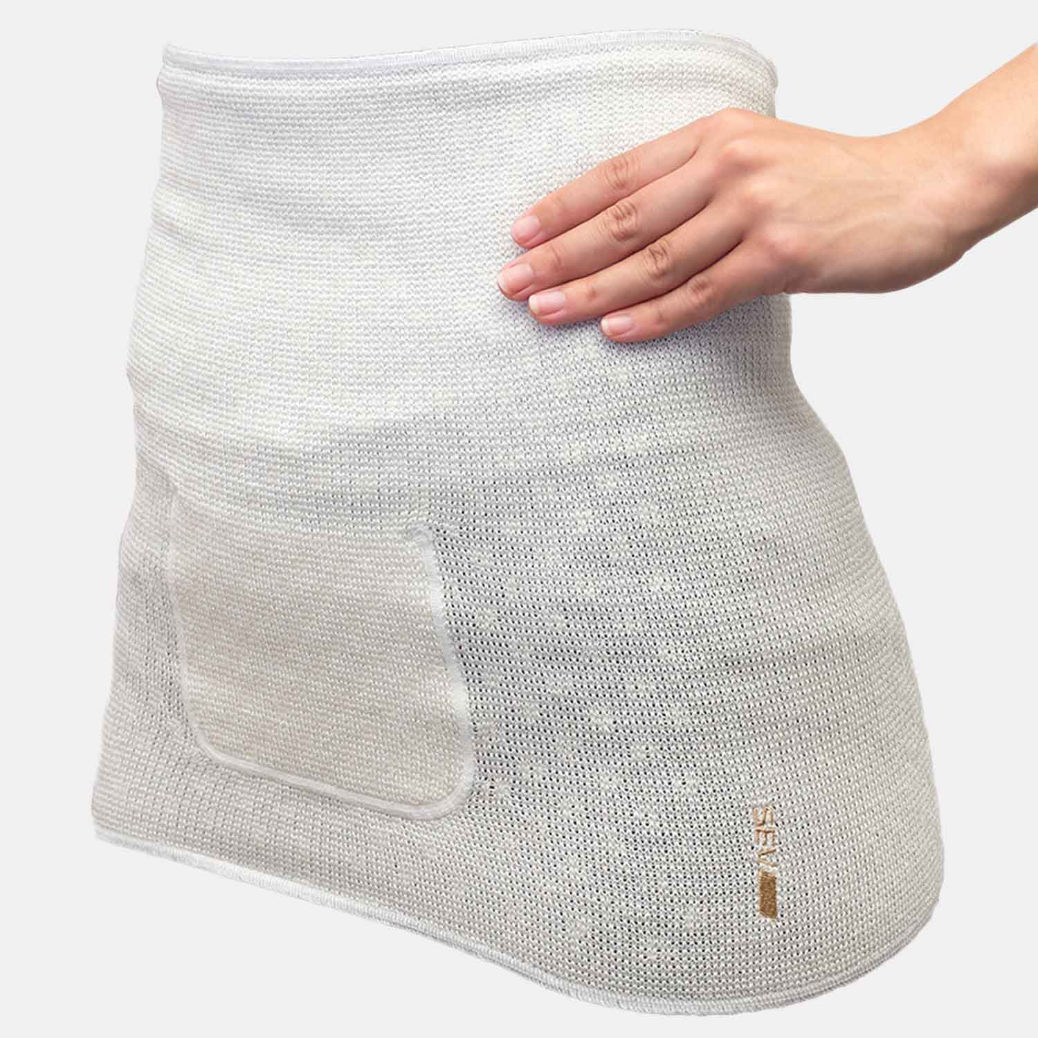 SEVボディガード+は、肌触りがソフトなシルク生地を採用したはら巻タイプのアイテムです。生地全面にnanoSEV加工を施しました。シルクは保湿・放湿・通気性に優れ、冬はあたたかく夏は涼しく、1年中快適にご着用いただけます。