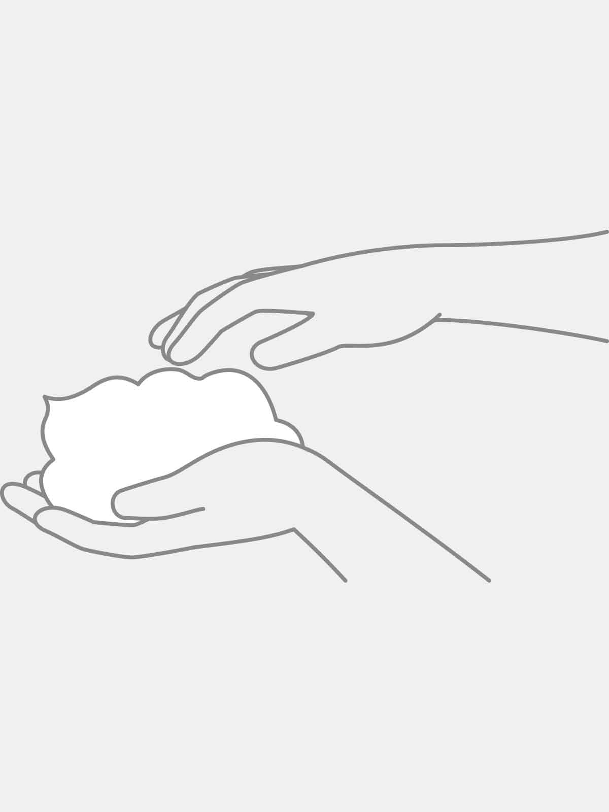 適量(2㎝程度)を手のひらに取り、水かぬるま湯を加えてよく泡立てます。