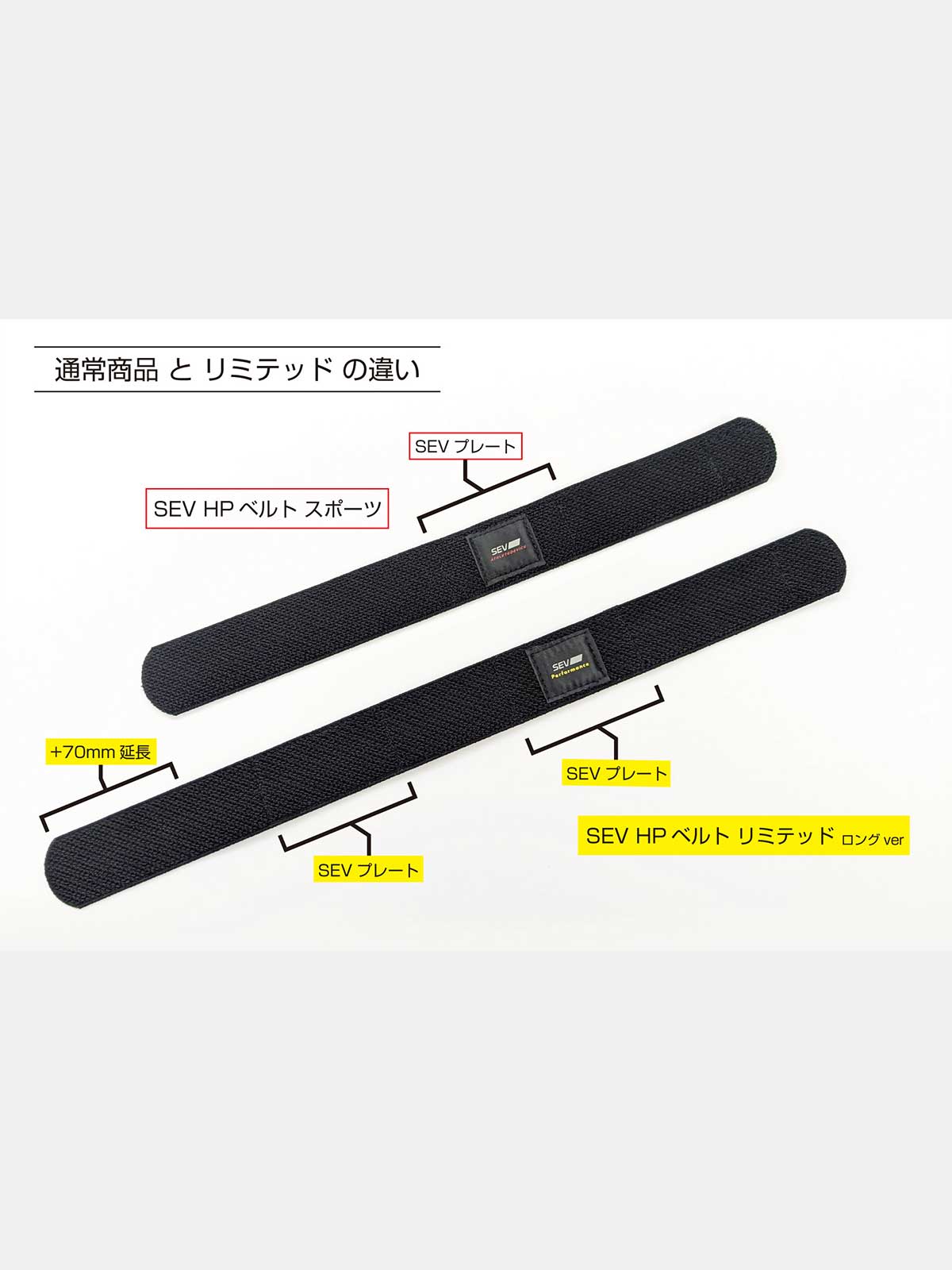 SEV健康用製品の中でもロングセラーなアイテム「SEV HPベルトスポーツ」に、数量限定の特別仕様「SEV HPベルト リミテッド ロングver」が誕生しました。内蔵されているSEVのプレートを1枚から2枚に増量。様々な箇所に使用できるようにベルトを70mm延長しました。通常品と同じく手首・足首にご使用いただくのはもちろん、肘上や膝下など関節まわりにもご使用いただけます。ロングセラーアイテム「SEV HPベルトスポーツ」の特別仕様を、この機会にぜひお買い求めください