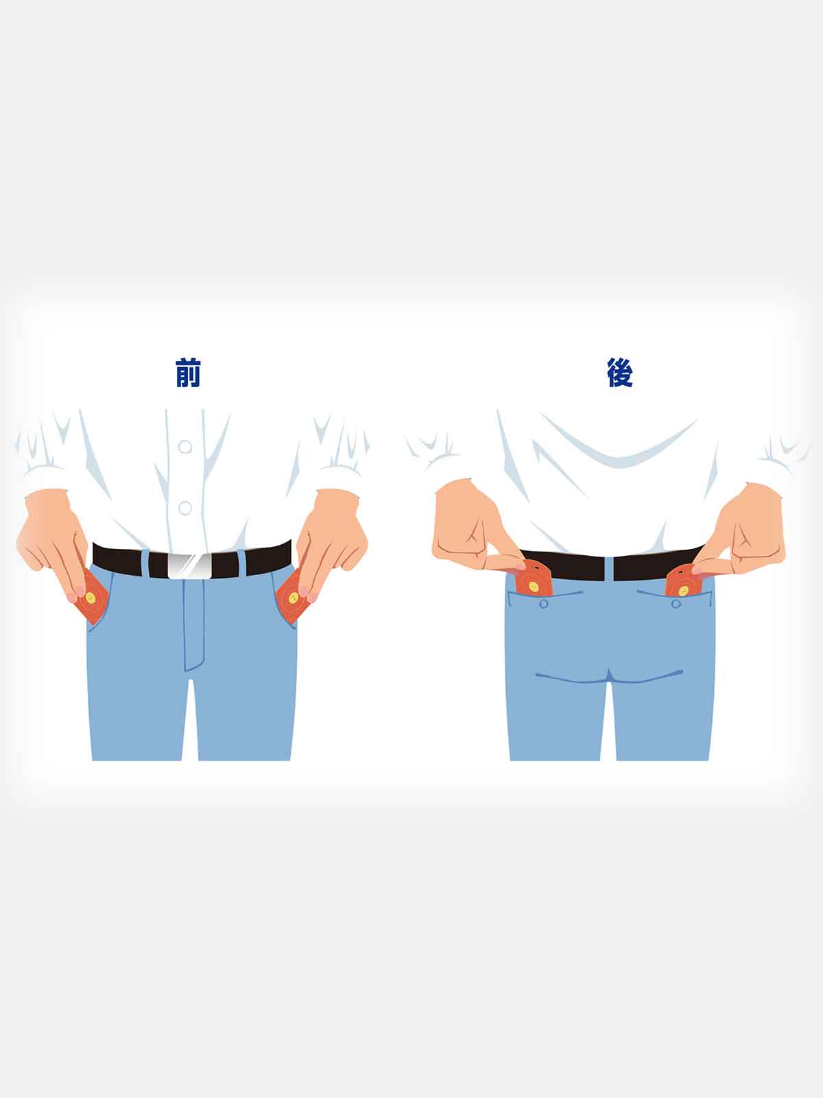 小さいSEVポケットフレンド【2】を前ポケットに、大きいSEVポケットフレンド【1】を後ポケットに入れてご使用ください。