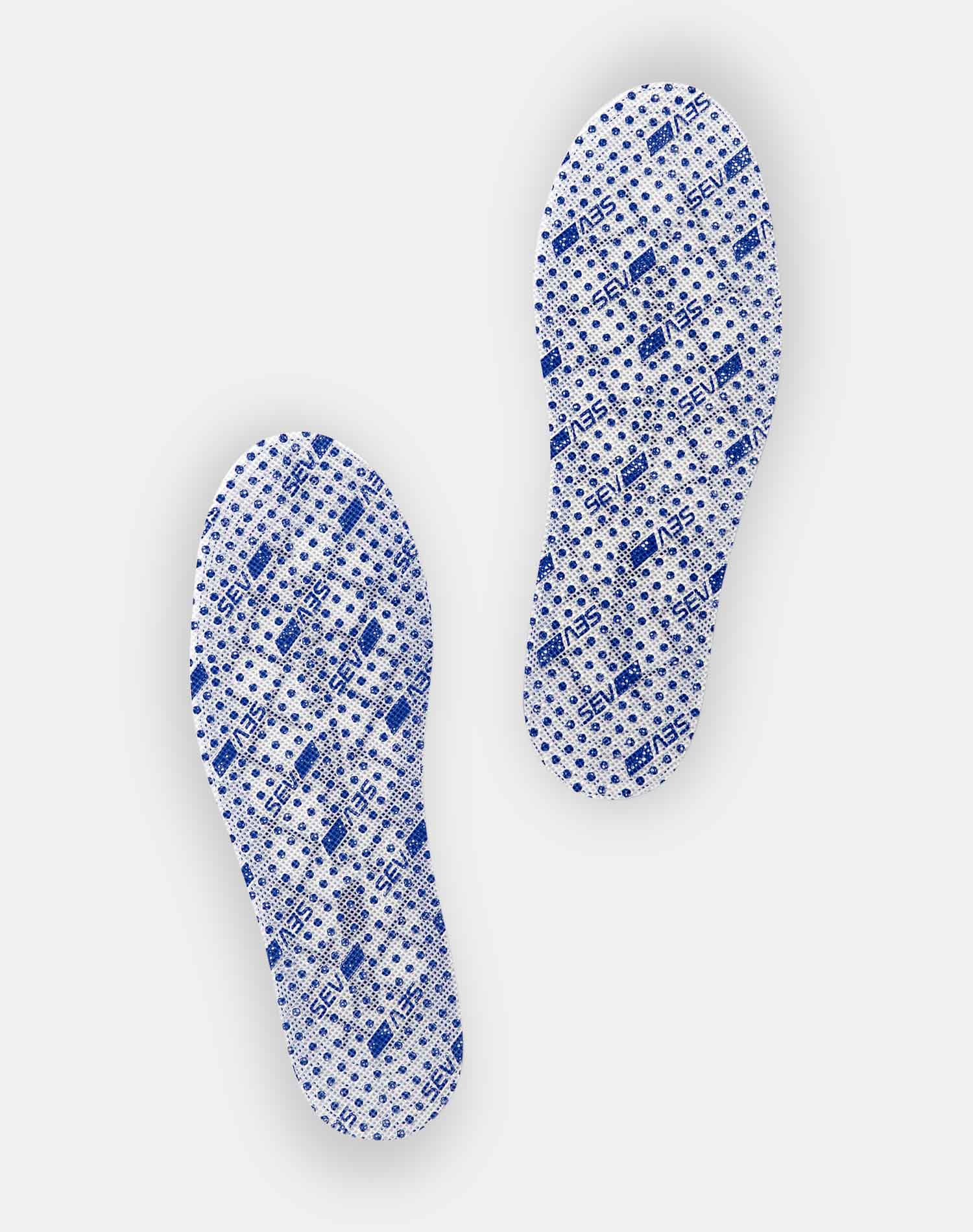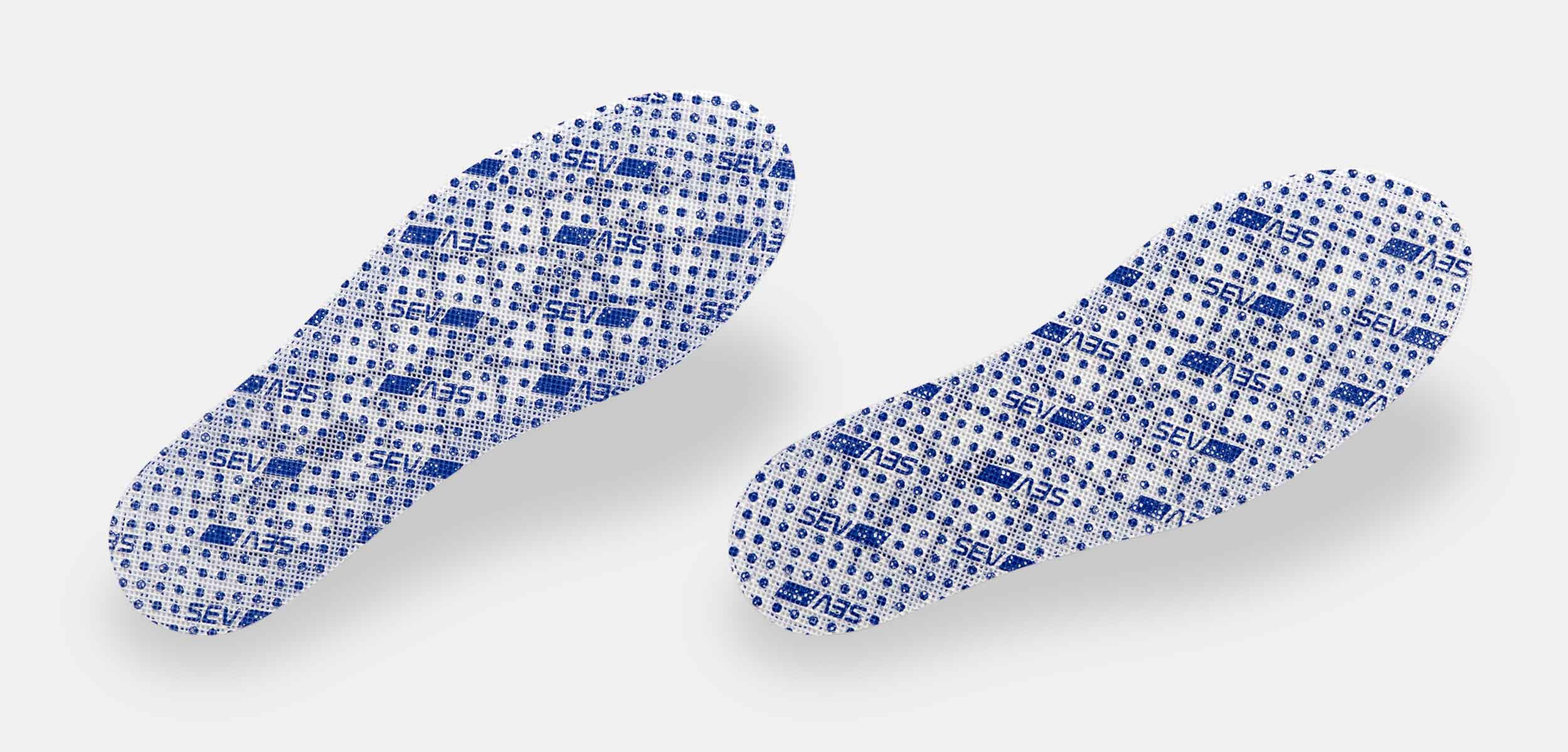 「SEVアンダーインソール」は、インソール(中敷)の下に入れて使用する超薄型のSEVインソールです。全面にnanoSEVを使用しており、足裏全面をSEVがサポートします。やわらかい素材を使用しているので、違和感なくご利用できます。