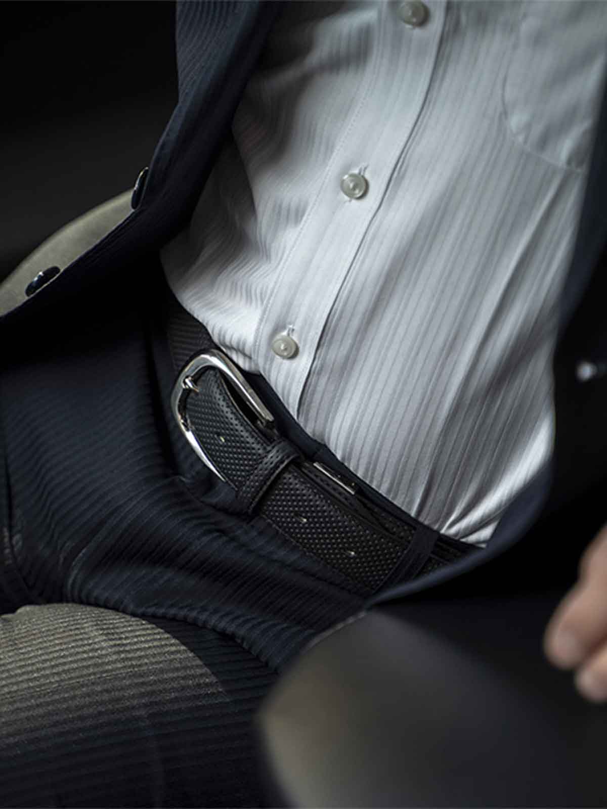 ベルト本体にはSEVが内蔵され、腰全体をSEVで包み込みます。ベルト内側はブランドカラーのブルーを採用しました。また、プレミアムカーのステアリングなどに使用されているハイブリッドレザーを使用。長くご愛用いただけるように根革の裏まで丁寧に革張りし、SEVロゴを型押ししました。上品に仕上げたベルトは、ワンランク上のコーディネートが楽しめます。