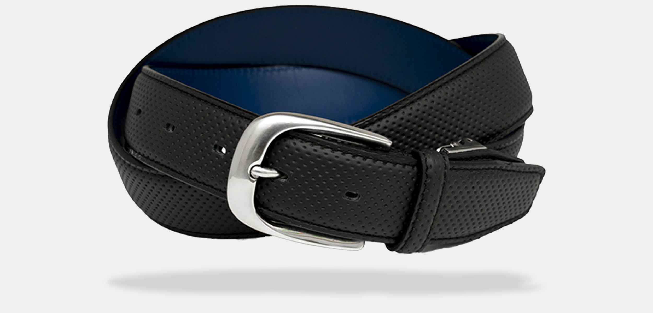 プレミアムカーのステアリングなどに使用されているハイブリッドレザーを使用。ベルト内側はブランドカラーのブルーを採用しました。